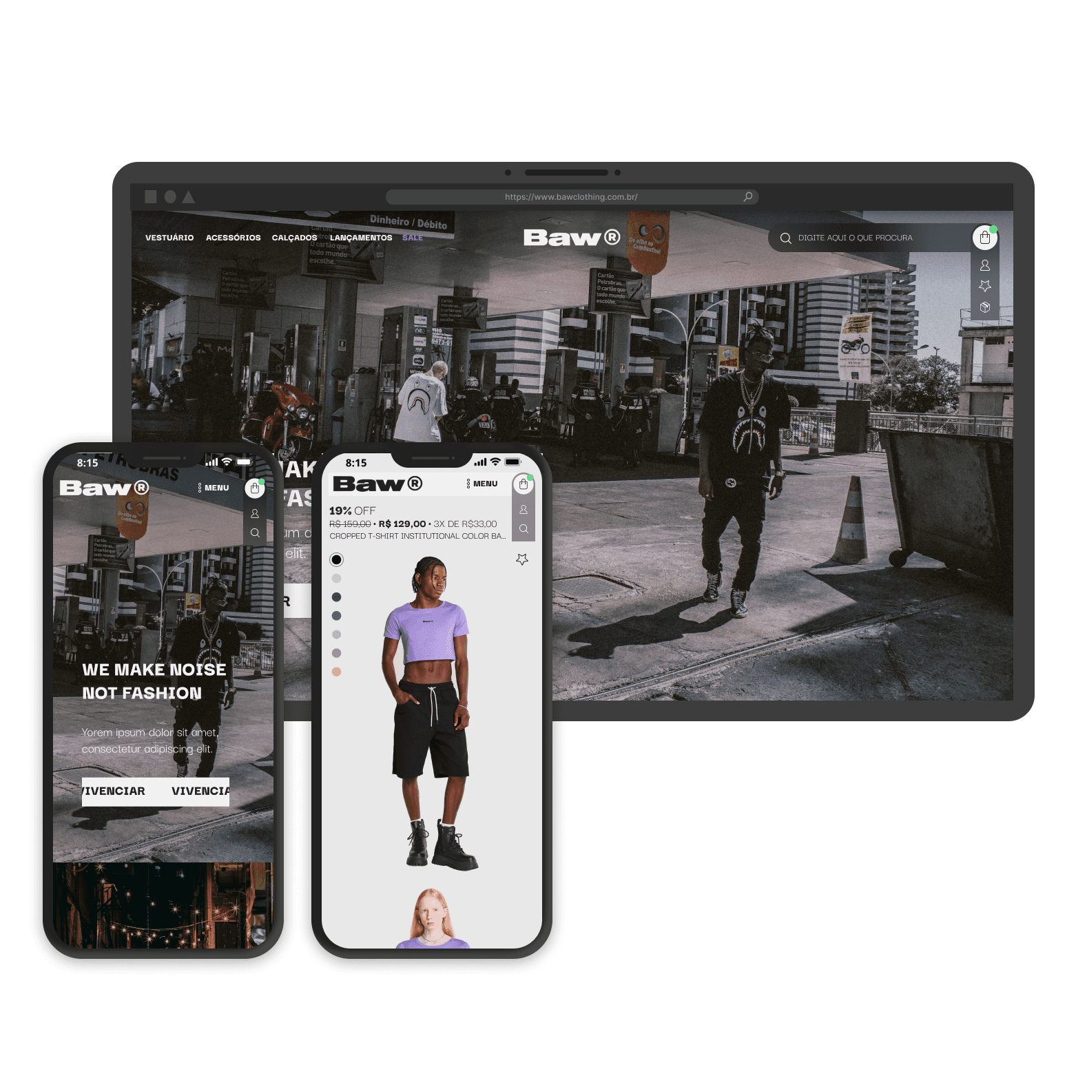 Baw positions itself in the market as a bold and outspoken company, as their slogan states, "we make noise, not fashion." They wanted their e-commerce platform to reflect this vision while offering a cohesive and engaging user experience.