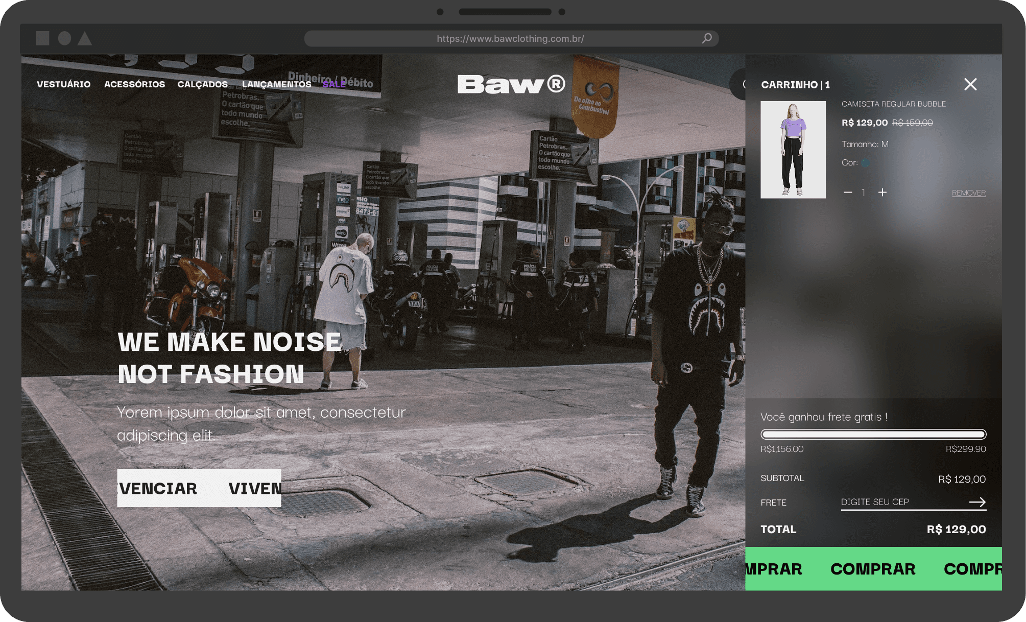 We translated the brand's identity, characterized by its streetwear aesthetic, into the website design. We enhanced the checkout process using the VTEX system, a SaaS (Software as a Service) e-commerce platform, customizing it to reflect the brand's identity.