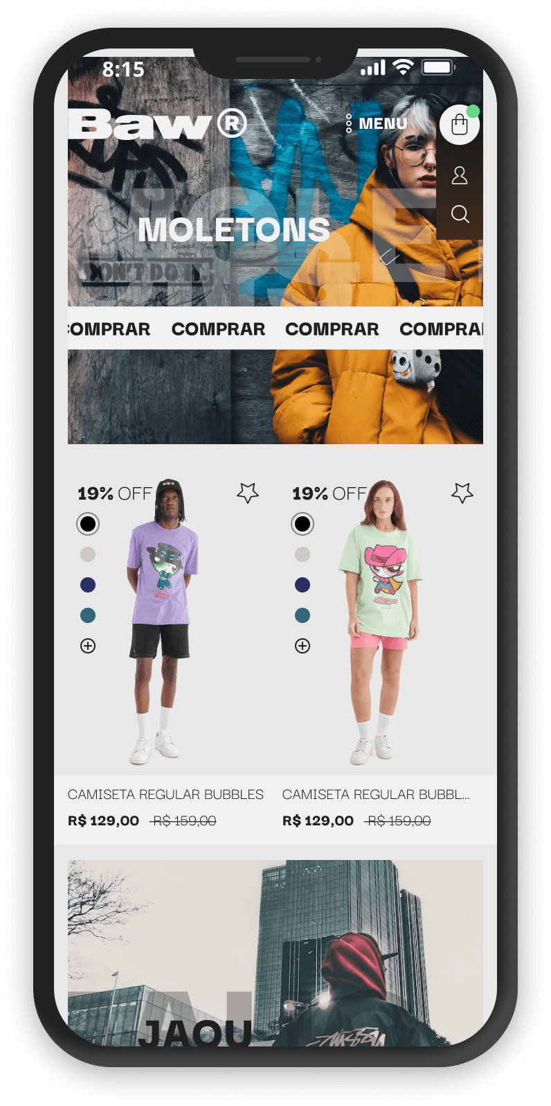 BAW Clothing is a contemporary Brazilian fashion brand known for its urban and streetwear-inspired designs. Catering to a youthful and trend-conscious audience, BAW offers a wide range of apparel, including t-shirts, hoodies, jackets, and accessories. The brand is recognized for its bold graphics, vibrant colors, and innovative designs that reflect the dynamic lifestyle of its customers. BAW Clothing has quickly gained popularity in Brazil's fashion scene for its unique style and commitment to quality.
