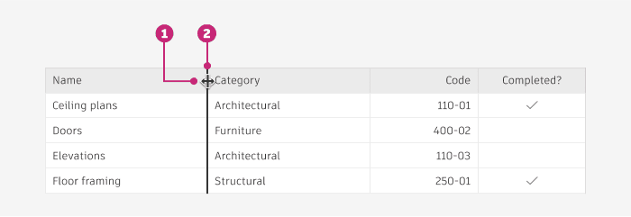 Resize cursor: When a user’s cursor hovers over the border between columns, change to indicate the ability to resize.