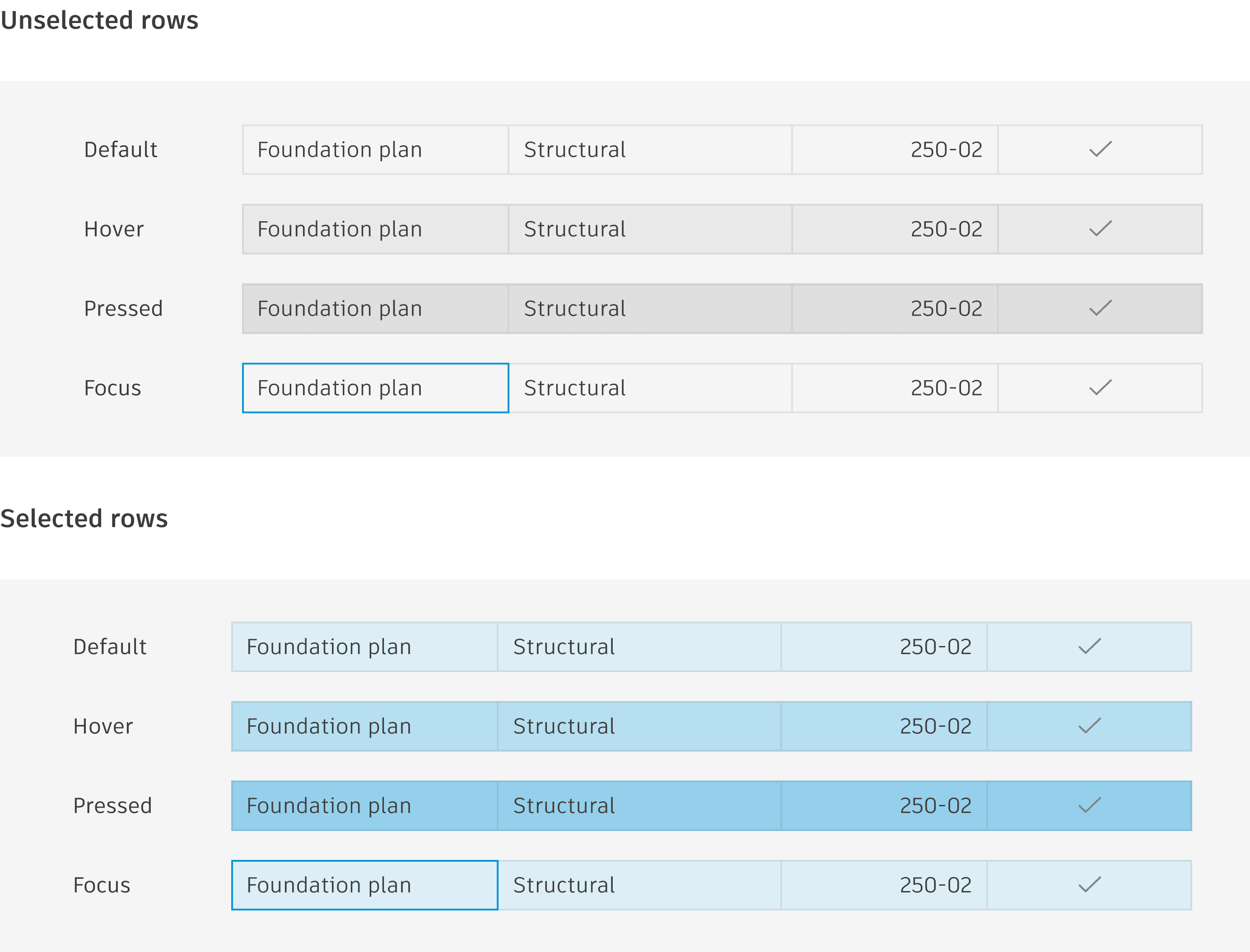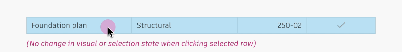 Check box (optional): Allows users to select or deselect the row. Users can select a row by clicking directly on the check box, clicking on the row itself, or both.