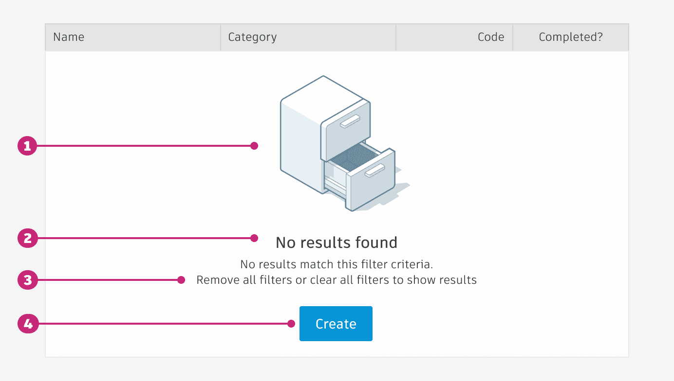 Call to action (Optional): Include a button or text link that prompts users to resolve the empty state issue.