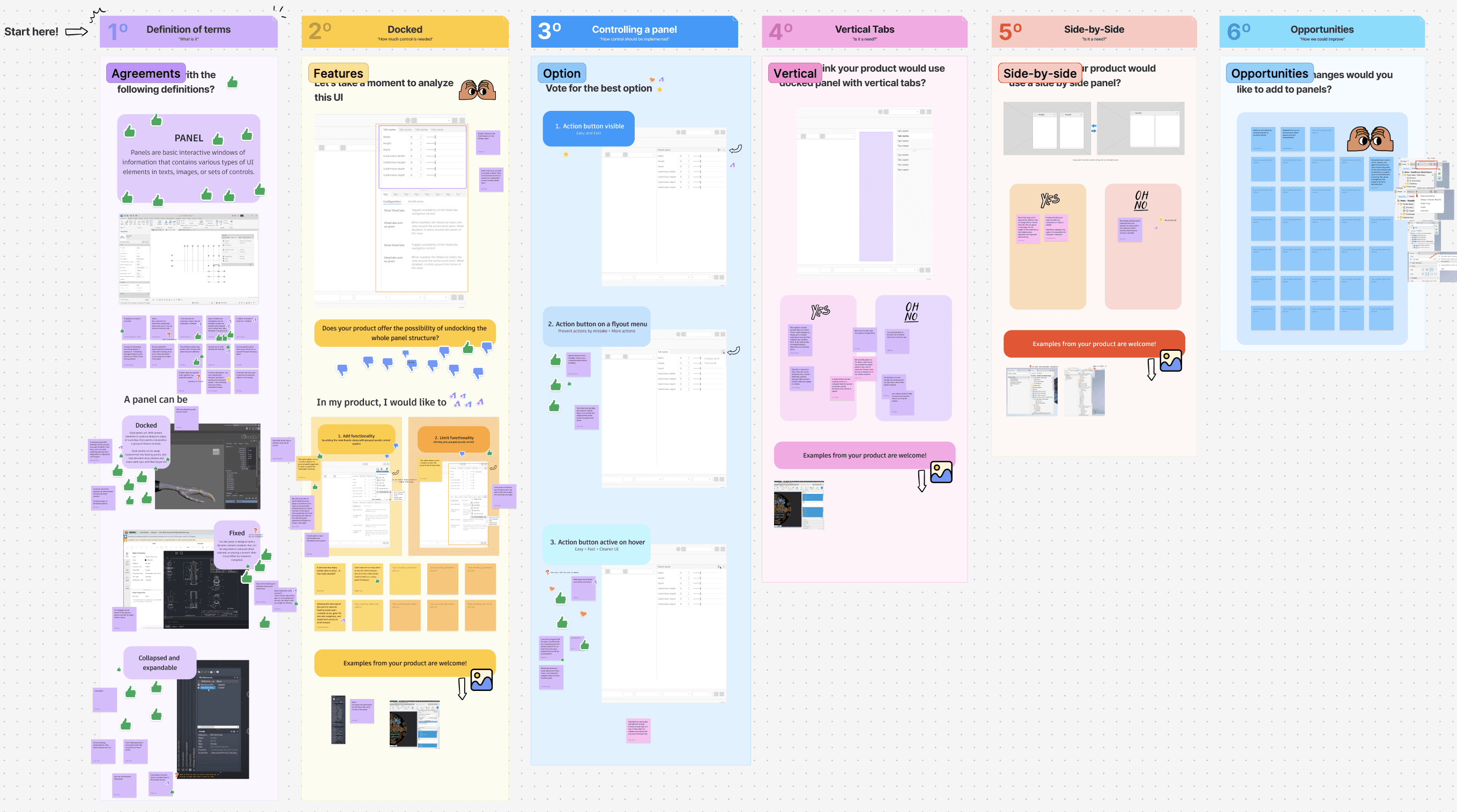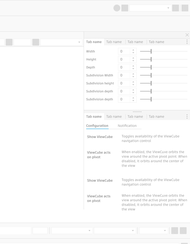 Since the component existed but was not widely used, research focused on understanding the product teams' needs regarding panels. I contacted designers across Autodesk, collecting numerous panel examples. Products were customizing panels due to space issues, lack of guidance, and specific UI needs. To address this, I hosted a Zoom workshop with designers to integrate their needs into one component, defining panel characteristics, behaviors, and differences from modals. We discussed specific panel behaviors required and allowed for additional suggestions. An external audit of panel implementations in products like Adobe and Sketch was conducted to understand expected behaviors.