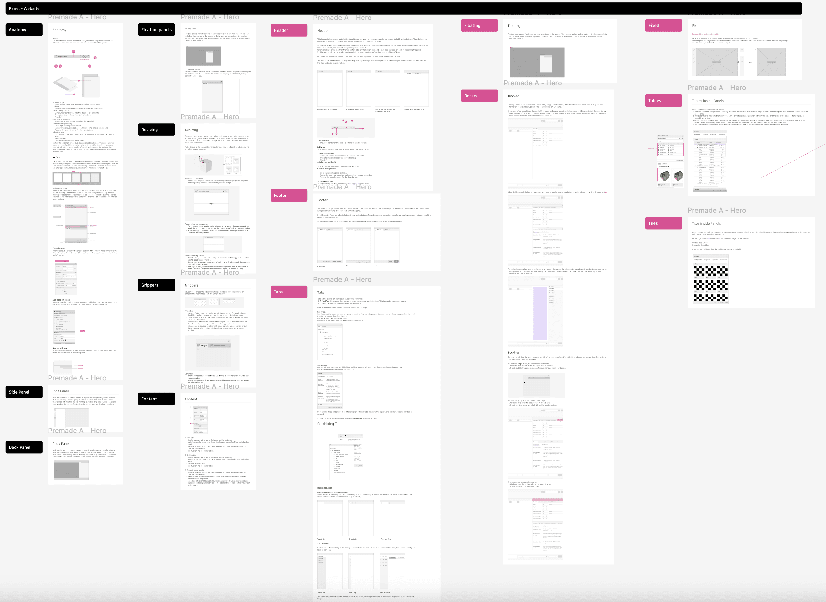 On the documentation we focused on the anatomy, tabs within panels and the behaviors, specifically docking experience
