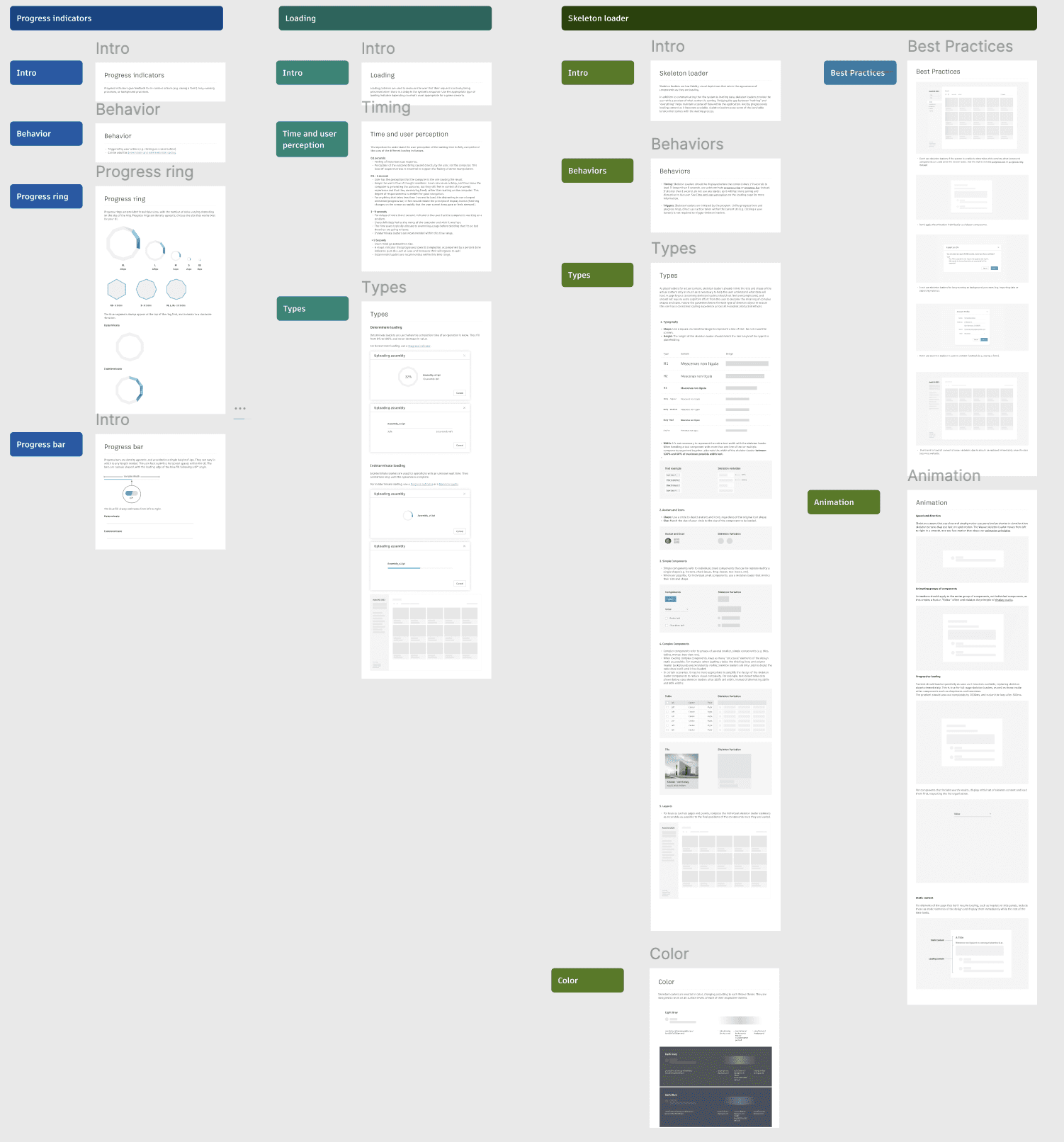 While designing, I started working on the documentation. We added a page on the Weave website under the “Foundation” section of our design system and a new page in the component section for the skeleton loader. The documentation focused on expected behavior, the anatomy of each design component, colors, animation specs, and best practices. After the feedback was approved by the lead designer and content designer, everything was updated on the website.